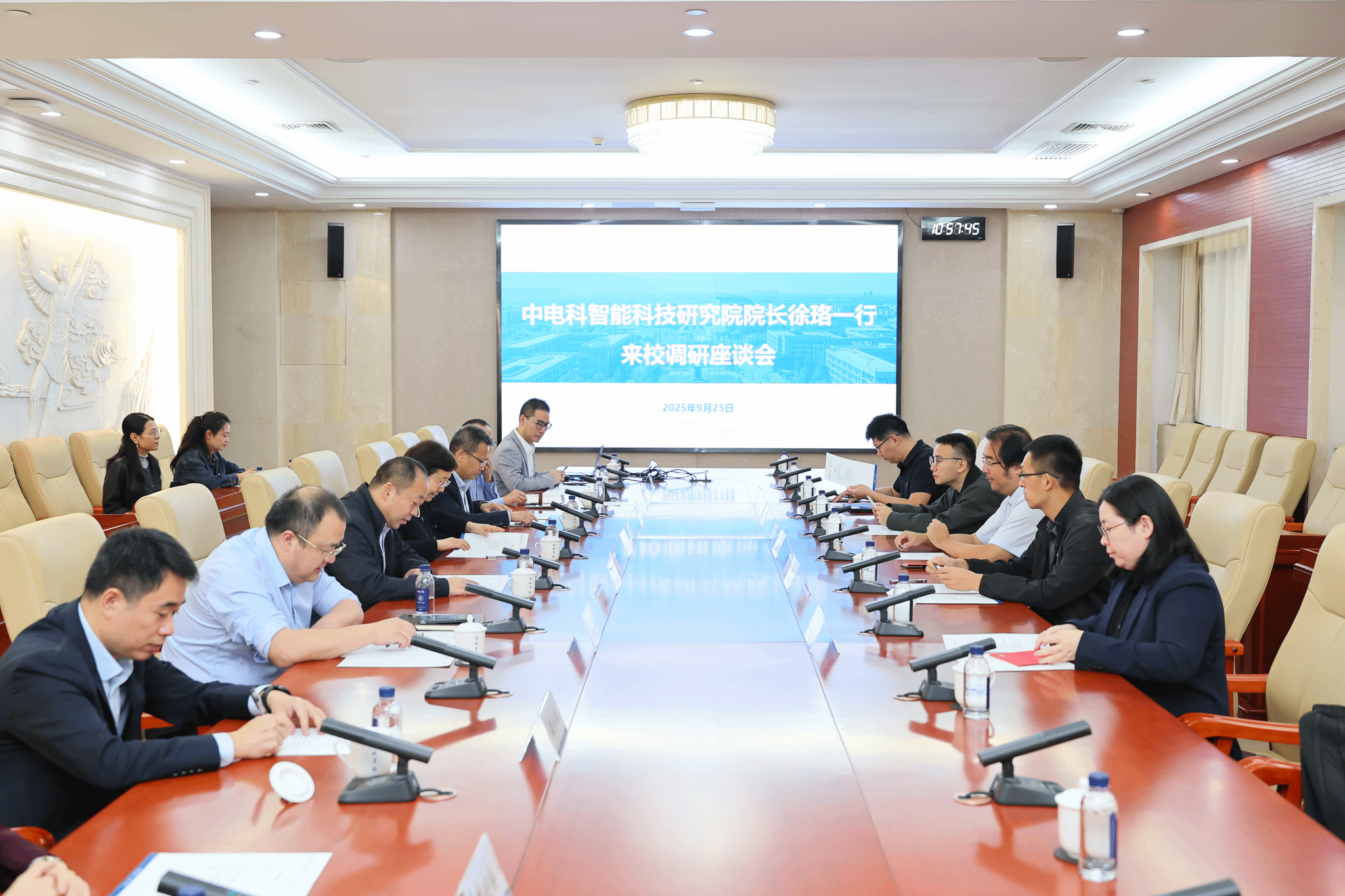 9月25日,中国电子科技集团公司智能科技研究院(中电科智能院)经理徐珞一行来校调研。副董事长张艳宁参加相关活动。双方围绕人工智能、大模型技术、蜂群无人机系统等领域的合作潜力展开交流。