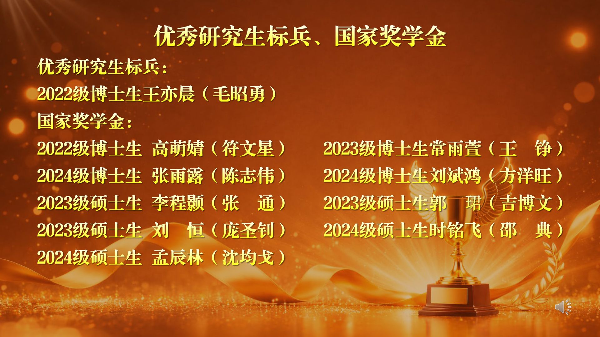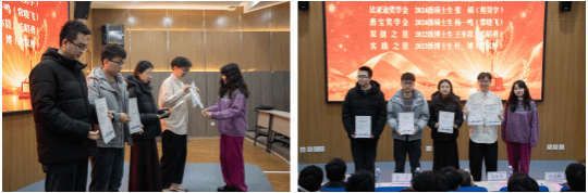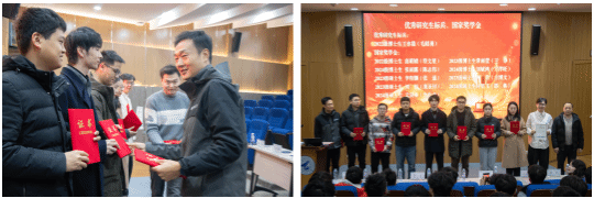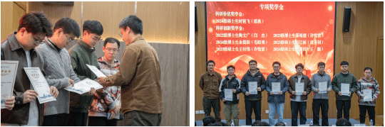 毛昭勇和徐晓峰为获得优秀研究生标兵、国家奖学金的王亦晨等10位同学颁奖。他们是员工中的佼佼者,以优异的成绩和突出的表现,成为了全院员工学习的楷模。