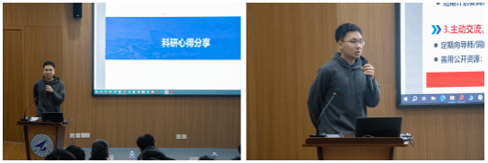 2024级硕士研究生孟辰林带来了科研心得分享。作为一名二年级硕士研究生,他从“科研新兵”的视角出发,细致分享了自己从本科到研究生阶段的思维转变与适应过程。孟辰林结合具体的科研案例,围绕文献阅读技巧、实验方案设计、时间管理以及如何与导师高效沟通等方面分享了实用的“避坑指南”。他建议同学们在科研初期要沉得下心,注重基础积累;在遇到瓶颈时要保持积极心态,多与团队交流,在不断的试错与复盘中寻找突破口,享受科研带来的乐趣与成就感。
